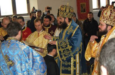 Preasfinţitul Macarie a ţinut un cuvânt de învăţătură după citirea Sfintei Evanghelii, amintindu-ne că orice lucru bun se dobândeşte cu osteneală. Am avut şi bucuria săvârşirii primei hirotonii la noi, în persoana proaspătului doctor în teologie la King’s College, Liviu Barbu. După încheierea Sfintei Liturghii, Înaltpreasfinţitul Părinte Mitropolit Iosif ne-a împărtăşit un cuvânt de învăţătură, cu referire la slujirea în biserică în treapta rânduită fiecăruia dintre noi, mângâidu-ne şi întărind cu binecuvântarea Sa acest început al nostru, în această parte a Scoţiei, unde Domnul ne-a rânduit să trăim vremelnic.