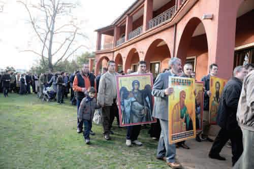 Mare şi plăcută a fost surpriza să constatăm că invitaţia pe care Preasfinţitul Siluan, episcopul ortodox român al Italiei, a adresat-o, prin preoţii parohi, tuturor credincioşilor ortodocşi români din Roma şi din împrejurimi, a avut un asemenea ecou, încât curtea Episcopiei, pe care o consideram “foarte mare”, s-a dovedit a fi neîncăpătoare pentru cele peste 120 de autoturisme ale celor peste 500 de credincioşi, veniţi cu mic, cu mare, să participe la procesiunea sfintelor icoane.