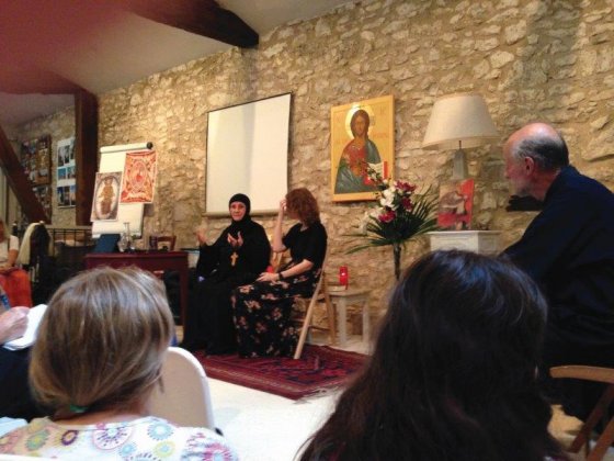Cu riscul de a-i şoca pe unii, trebuie să mărturisesc că am trăit Universitatea de vară de anul acesta ca pe o încercare „răstignitoare”, în toată complexitatea cuvântului. La început, asaltată de contradicţii teribile, prinsă între dorinţa mea sinceră de a primi cum se cuvine pe reprezentanţii Bisericii Ortodoxe Române – şi bucuria de a-i primi, şi dificultăţile de ordin logistic, mă simţeam strivită de munci şi pusă să îndeplinesc doar sarcini lumeşti! Din fericire, slavă Domnului!, mi-a venit gândul să merg la biserică şi să-I încredinţez lui Dumnezeu această povară pe care nu puteam s-o port singură... Şi atunci, în mijlocul tuturor celor adunaţi în rugăciune, am primit multe daruri, în chipul mesajelor de iubire şi de acceptare din partea aproapelui meu, desigur, diferit de mine, dar rugător ca şi mine şi doritor să trăiască în iubirea lui Hristos. Şi am simţit cum inima mea se deschide şi se linişteşte, şi cum perspectiva mea asupra celor care mă înconjurau se schimbă. Şi cu cât viziunea mea asupra celorlalţi se schimba, cu atât şi ceilalţi îşi schimbau atitudinea faţă de mine. Făcându-se mai atenţi, mai prevenitori, mulţumindu-mi/ne într-o mie şi unul de feluri pentru primire şi propunându-ne, mie şi lui Jack, să povestim copiilor – permiţându-ne astfel să ne exprimăm şi partea noastră creativă, şi aducându-mi, în cadrul schimburilor pe care le-am avut (de exemplu, în cadrul atelierului Marta si Maria,animat de părintele Claude Delangle), răspunsuri clare şi oferite cu prietenie la întrebările mele personale.