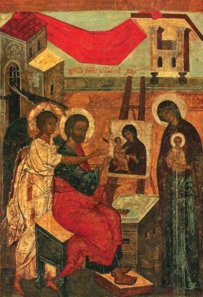 Sfântul Ioan Damaschin, mare iubitor și apărător al sfintelor icoane, ne scrie: „Dumnezeiescul Apostol și Evanghelist Luca a zugrăvit întocmai sfântul și preacinstitul chip al Maicii lui Dumnezeu, Maria, pe care a întâlnit-o la Ierusalim. A pictat-o pe Preacurata Fecioară în culori și în amestec de ceară, pe o bucată de lemn, ca să ne-o lase amintire și să ne-o arate așa cum era în realitate, dar văzută ca într-o oglindă. Maica Domnului însăși binecuvântând-o, i-a spus: Harul meu va fi cu ea.”