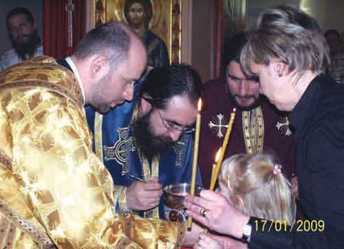 Pe la orele dimineţii de sâmbătă (17 ianuarie), rând pe rând, invitaţii au început să apară. Grupului Nectarie Protopsaltul i s-a alăturat strana de la parohia românească de la Londra, întregul grup fiind condus de Valentin Gheorghe, fondatorul grupului, actualmente protopsaltul bisericii româneşti din Londra. Printre părinţii slujitori s-au aflat: părintele Samuel şi părintele David de la Leeds (Patriarhia Ecumenică), părintele Samuel Carter de la Audley şi părintele Philip de la Lincoln (Patriarhia Antiohiei), părintele Gregory şi diaconul Paul de la Nottingham (Patriarhia Moscovei), părintele Andrew Louth de la Durham (Patriarhia Moscovei), părintele Alexander de la Halifax (Patriarhia Serbiei), părintele Marcel de la Glasgow şi fratele dânsului, părintele protosinghel Agaton (stareţul mănăstirii ”Izvorul Tămăduirii” din Petrova-Maramureş), părintele Dumitru de la Boston, părintele Dan de la Nottingham, părintele Mihai-Răzvan de la Birmingham şi părintele Dumitru, diaconul Preafinţitul Macarie. Un frumos sobor de şaptesprezece slujitori ! Preasfinţitul Macarie a ţinut un cuvânt de învăţătură, imediat după citirea Sfintei Evanghelii, împărtăşindu-ne câteva gânduri legate de Sfântul Macarie, ocrotitorul nostru. Am avut şi bucuria săvârşirii celei de a doua hirotonii la noi la Mirfield: după diaconia de anul trecut a părintelui Dan – actualmente paroh la Nottingham – , a fost rândul teologului Ioan să intre în treapta slujirii diaconeşti.