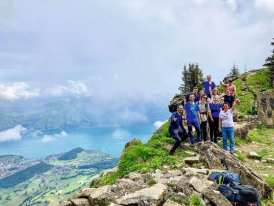 Pentru alegerea traseului am avut în vedere un loc cu o vedere panoramică deosebită, situat la o distanță egală de Zürich, Lausanne și mănăstire, un loc accesibil cu telecabina sau în trenulețul cu cremalieră, astfel încât să poată participa cât mai mulți neptici. Alegerea noastră a fost vârful Niesen (2.362 m), localizat la 40 de minute cu mașina de Berna. Putem spune că această ieșire a fost un real succes, întrucât am avut mai bine de 25 de participanți, de toate vârstele și de mai multe naționalități, din toate colțurile Elveției (și chiar un participant venit special din Italia!).