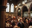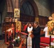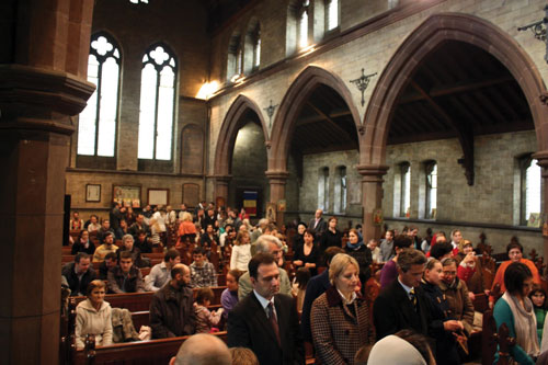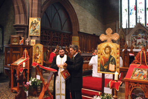 Prima Liturghie Ortodoxă a fost săvârşită duminică, 30 octombrie 2011, cu participarea a numeroşi credincioşi, alături de români aflându‑se şi credincioşi englezi şi francezi convertiţi la Ortodoxie, precum şi greci din zonă. Slujba a fost oficiată de un mic sobor de preoţi şi diaconi de la parohiile româneşti învecinate: Birmingham (Pr. Mihai‑Răzvan Novacovschi şi Arhid. Paul Longhin) şi Newcastle‑upon‑Tyne (Pr. Serafim Aldea), care s‑au alăturat clericilor parohiei „Sfântul Macarie cel Mare” (Pr. Constantin Popescu şi Diac. Ciprian‑Mihail Bădin). La slujbă a participat şi Excelenţa Sa domnul Ambasador Ion Jinga, însoţit de o delegaţie a personalului diplomatic român acreditat la Londra.