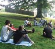 Instituim şi o tradiţie care va ţine toate serile pe care le vom petrece la schit: facem un foc de tabără şi continuăm discuţia la lumina lui. Zilele se scurg apoi lin, dar pline de întâmplări şi pare că poiana devine din ce în ce mai mult acasă pentru noi. Groapa pentru fundaţie se adânceşte, grămezile de pietre cresc, câteva fete se arată experte în mânuirea ... barosului, pregătim masa şi mâncăm împreună, facem drumeţii prin împrejurimi şi ne bucurăm de privelişti pe care le vom păstra în suflet, avem discuţii duhovniceşti sau prieteneşti, stăm la focul de tabără, pândind stele căzătoare şi cântând melodii populare...