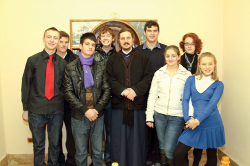 Anul 2012 a debutat astfel cu dubla participare a tinerilor noştri la activităţi artistice. Pe lângă concertul de colinde pe care l‑au susţinut de Crăciun, cu ocazia Hramului parohiei, Izabela şi Otilia şi‑au adus contribuţia la programul artistic, dar au şi participat, împreună cu alte tinere, la concursul de prăjituri organizat de parohie, mai ales ca să încurajeze tinerele gospodine să‑şi exerseze măiestria în arta culinară. În luna februarie, tinerii au arătat că nu ştiu doar să concerteze, ci au şi o inimă generoasă, participând cu naturaleţe la programul social iniţiat de Episcopia noastră, „Flămând am fost şi Mi‑aţi dat să mănânc”, în cadrul căruia au ajutat la distribuirea de hrană rece pentru cei nevoiaşi. În luna martie, s‑au aflat în fruntea procesiunii cu sfintele icoane din Duminica Ortodoxiei la Episcopia noastră de la Roma. Tot în martie, tinerii noştri au avut bucuria să poată participa la o seară duhovnicească şi catehetică susţinută de către Episcopul nostru, Preasfințitul Siluan, care le‑a adresat un gând potrivit vârstei şi problemelor lor. Aprilie, cu timpul blând şi însorit, a fost ales pentru un pelerinaj la rusticul schit din Rignano Flaminio, unde s‑au simţit ca acasă, în România, urmat de o relaxantă drumeţie cu urcuş pe muntele Sorrate, unde s‑a prânzit din rucsac şi şi‑au petrecut timpul până seara cu diverse jocuri instructive, dialog creştin şi ghicitori pe teme biblice. Pe vârful muntelui, într‑o absolută măreţie, tăcere şi nemişcare, a fost mult mai uşor ca tinerii să‑şi umple inima de evidenţa existenţei lui Dumnezeu şi să se îndrepte spre El.