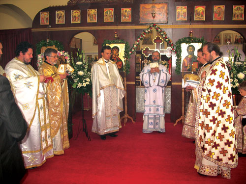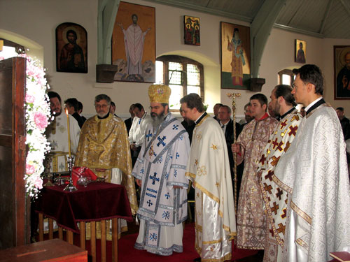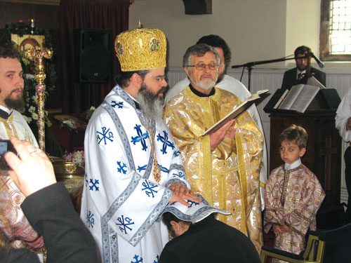În cadrul Sfintei Liturghii, Preasfinţitul Ignatie a săvârșit atât botezul micuţei Anastasia, darul lui Dumnezeu pentru familia părintelui Oprişan în zilele luminate ale Sfintelor Paşti, cât şi hirotonia întru diacon a teologului Andreas Andreopoulos (specialist în iconografie ortodoxă, lector la Universitatea Winchester). Întreita slujire a Tainelor (Liturghie, Botez şi Hirotonie) din această duminică, numită Duminica Femeilor Mironosiţe, vestitoarele Învierii lui Hristos, a dat ocazia Preasfințitului Ignatie de a rosti un impresionant cuvânt de învăţătură despre vocaţia femeii în slujirea Bisericii, a familiei şi a întregii societăţi. Au mai luat cuvântul părintele protopop Silviu‑Petre Pufulete şi pr. Marcel Oprişan, care a adresat calde mulţumiri celor prezenţi, în mod special susţinătorilor şi binefăcătorilor parohiei româneşti. Invitat să se adreseze adunării, ES D‑l Ambasador Ion Jinga, desemnat recent „ambasadorul anului” de către revista Diplomat din Londra, şi‑a mărturisit bucuria de a se afla pentru a şaptea oară în mijlocul „prietenilor români şi scoţieni” din Glasgow, reamintind totodată eforturile pe care le întreprinde corpul diplomatic în sprijinul comunităţilor româneşti care locuiesc în Marea Britanie.