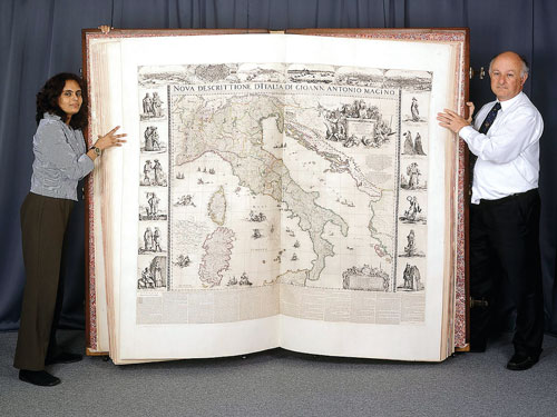 Est « L’Atlas Klencke » ; il faut six personnes pour le soulever. Pour l’ouvrir, il faut encore deux personnes, car l’exemplaire mesure 1,75 mètre de haut et 1,90 mètre de large. Ce livre inhabituel était un cadeau du commerçant néerlandais Yohannes Klencke au roi Charles Second, après la ré‑intronisation de celui‑ci à la tête du royaume d’Angleterre, en 1660.