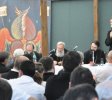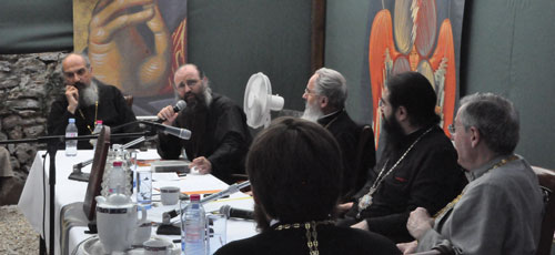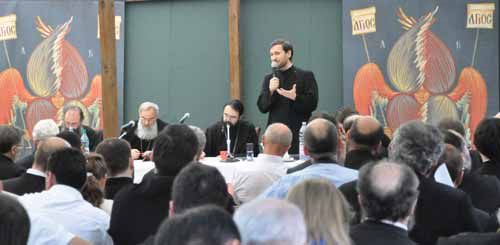 Père Patriciu Vlaicu (Belgique, Commission canonique et juridique) a fait preuve du charisme d’un sage discernement en mettant en valeur l’idée de « conscience canonique » de l’Eglise. Les « saints canons » ne sont pas des normes à caractères juridiques : ils expriment la conscience charismatique de l’Eglise. Ils sont les prolongements des commandements évangéliques ; ils sont donnés pour la vie des baptisés, pour articuler dans la pratique le contenu de la Foi. Ils ne sont pas relativisés par les modes ou le modernisme : mais leur actualité permanente bénéficie du principe d’« économie », l’application contextuelle de la sagesse qui les inspire ; cette économie, comme devait le rappeler plus tard le métropolite Joseph, appartient à la responsabilité du ministère épiscopal. Dans un des groupes de discussion, a été posée la question urgente d’une unité locale dans l’économie canonique de l’Eglise : mais la conscience canonique ne peut être artificielle ; suscitée par le saint Esprit, elle naît en chaque lieu, suivant le principe territorial, des besoins pastoraux, de l’expérience, ainsi que de l’apport des divers peuples qui construisent ensemble l’Eglise du lieu. Toutefois, les assemblées d’évêques orthodoxes de chaque pays d’Europe ont la tâche de promouvoir une telle conscience harmonieuse, au service des communautés de leurs diocèses respectifs, et afin que ceux-ci puissent mettre en oeuvre une bonne coopération pastorale entre eux.